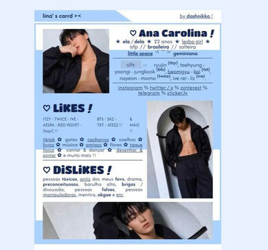 | faço carrds para ig stan, apresentação pessoal e/ou de personagem, rpg, portfólio, e muito mais! |
